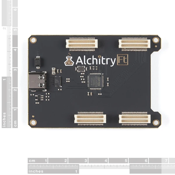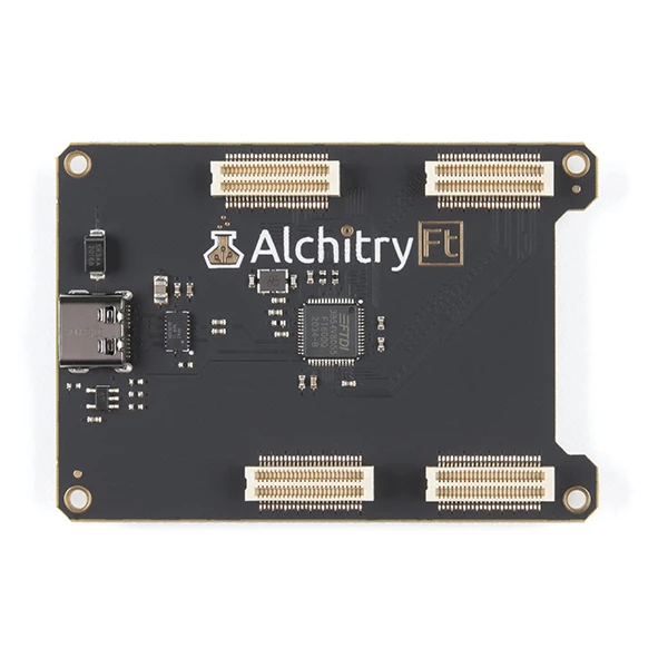 Meet the Alchitry Ft Element Board! Alchitry Elements are expansion boards similar to Arduino shields or Raspberry Pi HATs that work with your Au and Au+ FPGA Development Boards. The Ft Element is equipped with four 50-pin board to board connectors on the underside and top of the board that snap to the Alchitry Au and Au(+) boards. It also adds a USB 3.0 200MB/s high speed interface to your Alchitry board stack via the USB-C connector.