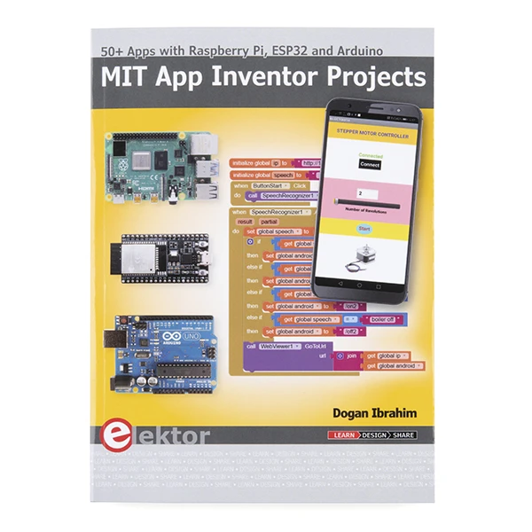 The Elektor MIT App Inventor Bundle is a kit built to help learn about developing apps for Android compatible mobile devices using the MIT App Inventor online development environment. MIT App Inventor projects can be in either standalone mode or use an external processor. In standalone mode, the developed application runs only on the mobile device (e.g. Android). In external processor-based applications, the mobile device communicates with an external microcontroller-based processor, such as Raspberry Pi, Arduino, ESP8266, ESP32, etc.