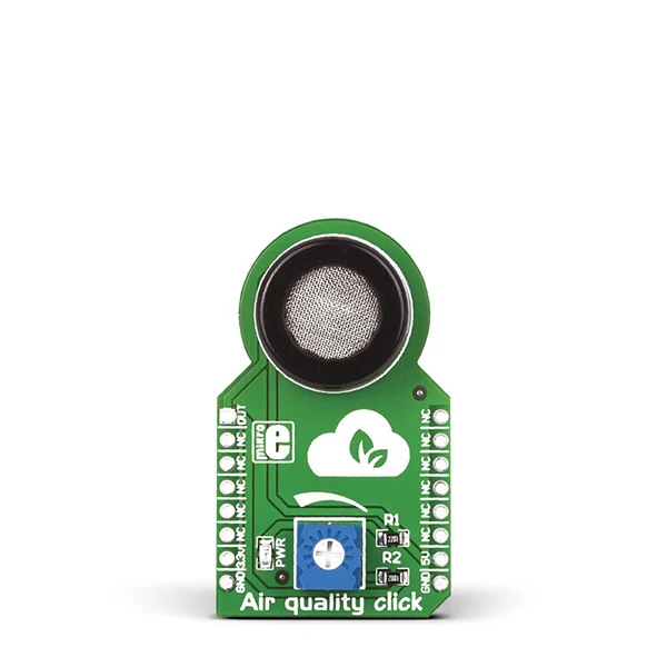 Air quality Click is suitable for detecting ammonia (NH3), nitrogen oxides (NOx) benzene, smoke, CO2 and other harmful or poisonous gases that impact air quality. The MQ-135 sensor unit has a sensor layer made of tin dioxide (SnO2), an inorganic compound which has lower conductivity in clean air than when polluting gases are present.