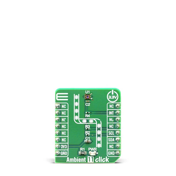 The Ambient 11 Click is a Click board™ equipped with the VEML6035, a low power, high sensitivity, I2C ambient light sensor from Vishay Semiconductors. Because of the possibilities its features offer, the Ambient 11 Click can be used as an ambient light sensor for mobile devices, industrial lighting operation, and as an optical switch for consumer, computing and industrial devices and displays.