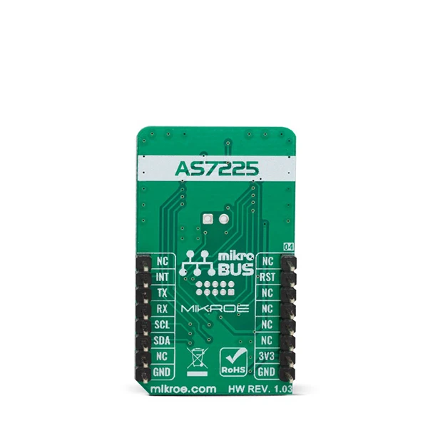 The Click board™ is supported by the mikroSDK library, which contains functions for simplified development. The mikroSDK functions are well-documented, but there is still a need, the datasheet of the AS7225 offers listing of all the registers and their specific functions.