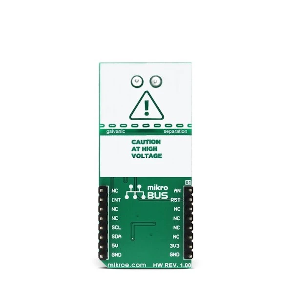 The ACS711 IC offers a galvanic isolation for up to 100V. A care should be taken when operating with high voltages, not to touch the Click board™.