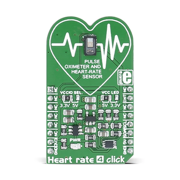 Heart Rate 4 Click carries the MAX30101 high-sensitivity pulse oximeter and heart-rate sensor from Analog Devices. The Click is designed to run on either 3.3V or 5V power supply. It communicates with the target MCU over I2C interface, with additional functionality provided by INT pin on the mikroBUS™ line.