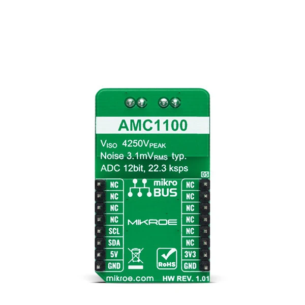 ISO ADC 3 Click is based on the AMC1100, a precision isolation amplifier with an output separated from the input circuitry by a silicon dioxide barrier that is highly resistant to magnetic interference from Texas Instruments. The AMC1100 can be used in conjunction with isolated power supplies to prevent noise currents on a high common-mode voltage line from entering the local ground and interfering with or damaging sensitive circuitry. It offers features as linearity, high input common-mode rejection, and low DC errors and drift, which makes it a high-performance isolation amplifier for industrial applications where users and subsystems must be protected from high voltage potentials.