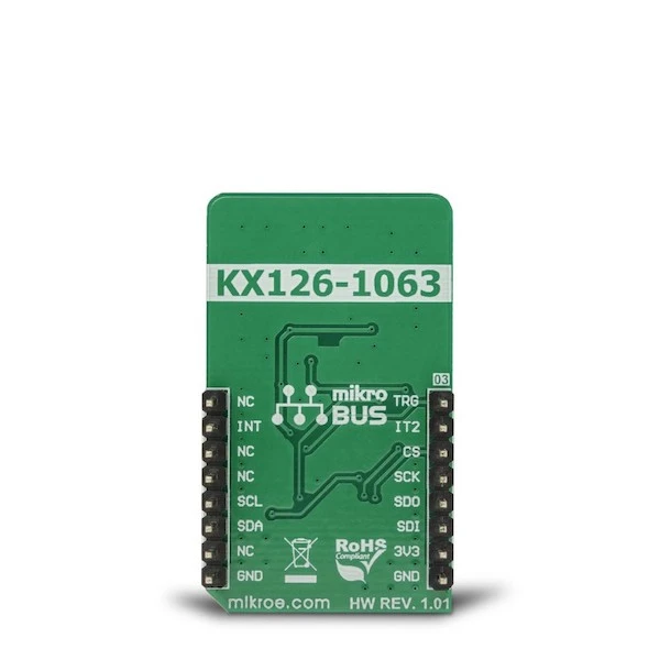 Each KX126-1063 device is factory calibrated, and its calibration parameters are stored in the one-time programmable memory (OTP). These parameters include the gain corrections and offset calibration. After each POR cycle, these calibration values are automatically applied, reducing the output error. Along with the used MEMS differential sensing technology, this reduces the measurement error to a virtually unmeasurable value. A built-in self-test function allows reliable operation of the Pedometer 3 Click.