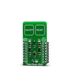 Power/Reset Click is equipped with two capacitive touch pads on a single Click board™. It can be activated by touch, and unlike the mechanical button, the capacitive touch button lasts much longer, it is not prone to damage and wear over time and it is very reliable. Capacitive buttons are a very popular method of powering up or resetting various devices. Besides the aforementioned benefits, having a touch sensitive button on a device allows for a compact design, opens possibilities for various kinds of human-machine interface and – it looks good and modern, especially if accompanied by a LED that turns on when activated, just like the one on Power/Reset Click. This Click board™ can find its place among many applications – for touch activated lighting controls, touch activated control panels, toys and any other applications that need a switch or a button for powering and resetting a device.