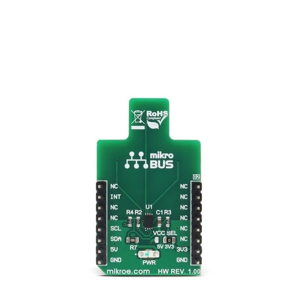 Any interrupt event will drive the #ALERT pin to a LOW logic state. This pin is routed to the mikroBUS™ INT pin and it is used to trigger an interrupt event on the host MCU.