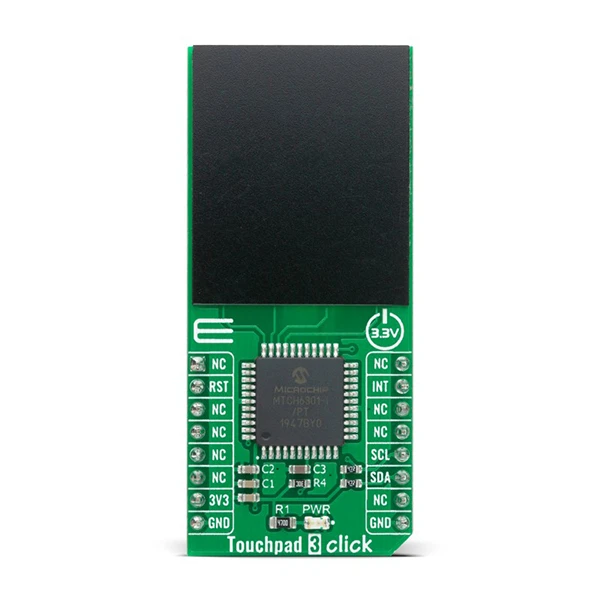 MIKROE Touchpad 3 Click is a compact add-on board that allows users to easily integrate projected capacitive touch into their applications. This board features the MTCH6301, a turnkey capacitive touch controller that makes it easy for users to use popular multitouch and gesture interfaces from Microchip. This controller’s sophisticated combination of Self and Mutual capacitive scanning for XY touchscreens and touchpads enables several features, including single and dual-touch drawing, the reporting of 11 single-finger gestures, and the detection of up to 10 touches. This Click board™ is suitable for human-machine interfaces, keypad or scrolling functions, single-finger gesture-based interfaces, and more.