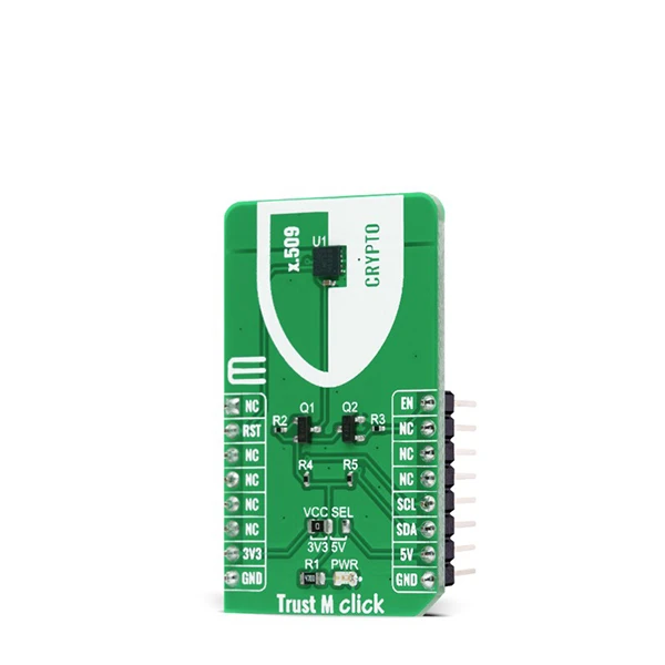 MIKROE Trust M Click is trust anchor add-on board for advanced security combined with high performance for connected devices that address individual needs in the field of embedded authentication, brand protection and further security applications. Its based on SLS 32AIA010 OPTIGA™ Trust M1 high-end security controller from Infineon, that features advanced security controller with built-in tamper proof NVM for secure storage and Symmetric/Asymmetric crypto engines. The OPTIGA™ Trust M1 covers a broad range of use cases necessary for many types of applications that include Network node protection using Mutual Authentication such as TLS or DTLS, Protect the Authenticity, Integrity and Confidentiality of data and IP, Secure Communication and many more.