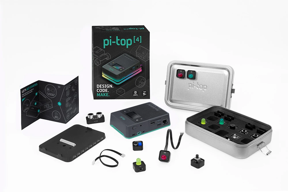 NOTE: You’ll need to connect your pi‑top [4] to a monitor, keyboard & mouse, or a laptop, tablet or our FHD Touch Display and Bluetooth Keyboard.