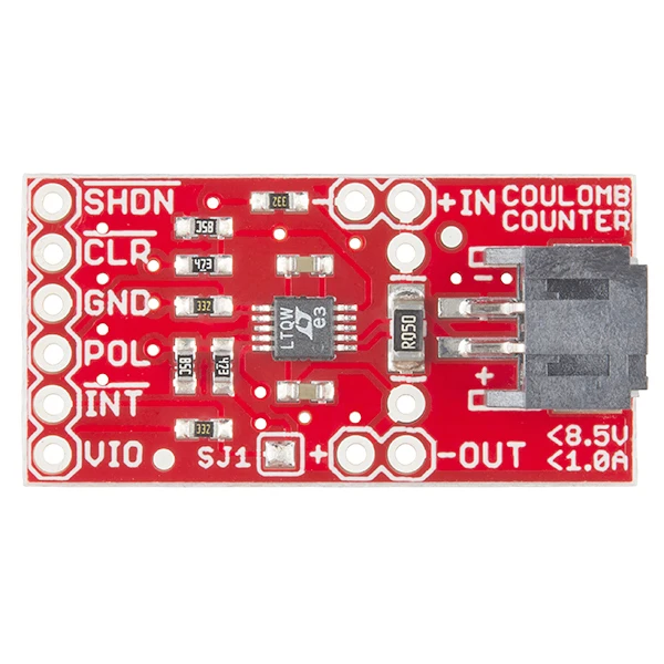 Odometers are extremely useful for cars, they tell you how far you have gone, wouldn’t it be nice if you were able to have a device that does the same for electrical current? The LTC4150 SparkFun Coulomb Counter Breakout is here to be your odometer for current. If you are wondering: a coulomb is defined as, to put it simply, one amp for one second. This breakout is capable of constantly monitoring the current your sensor is using, is able to add it up, and will give you a pulse each time a given amount of amp-hours have been used. When used effectively and if you start with a full battery, you’ll always know exactly how much of it is left!