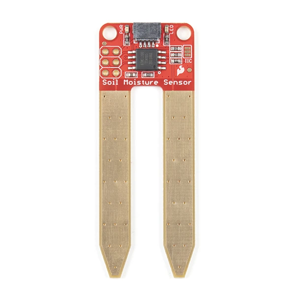 The SparkFun Qwiic Soil Moisture Sensor is a simple breakout for measuring the moisture in soil and similar materials. The soil moisture sensor is pretty straightforward to use. The two large, exposed pads function as probes for the sensor, together acting as a variable resistor. The more water that is in the soil means the better the conductivity between the pads will be, resulting in a lower resistance and a higher SIG out. This version of the Soil Moisture Sensor includes a Qwiic connector, making it even easier to use this sensor!