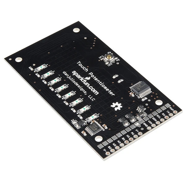 The SparkFun Touch Potentiometer, or Touch Pot for short, is an intelligent linear capacitive touch sensor that implements potentiometer functionality with 256 positions. It can operate as a peripheral to a computer or embedded microcontroller or in a stand-alone capacity. The Touch Potentiometer provides both a dual-channel analog and PWM output for direct control of other circuitry. Configurable analog and PWM transfer functions support a wide variety of applications such as volume control and LED dimming.